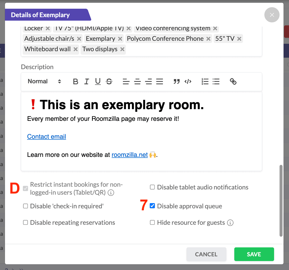 - リソースに対して承認キューが有効な場合、タブレット画面またはQRコードからのローカル予約は利用できません[D]。