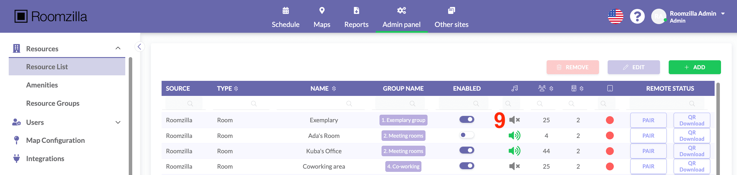 Note that after pairing a resource or opening a Roomzilla application on the remote device, it is necessary to tap anywhere on the screen to unmute sound notifications.
