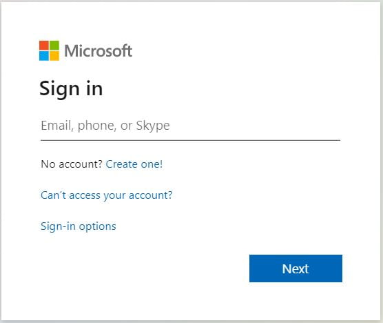 2. This will take you to the Microsoft log in screen.