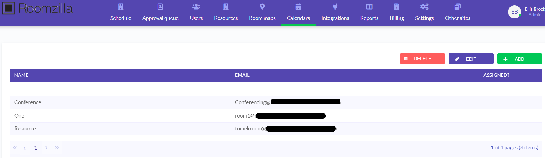 2. Once you have created your Resources they will then appear in your list on the Calendar Tab